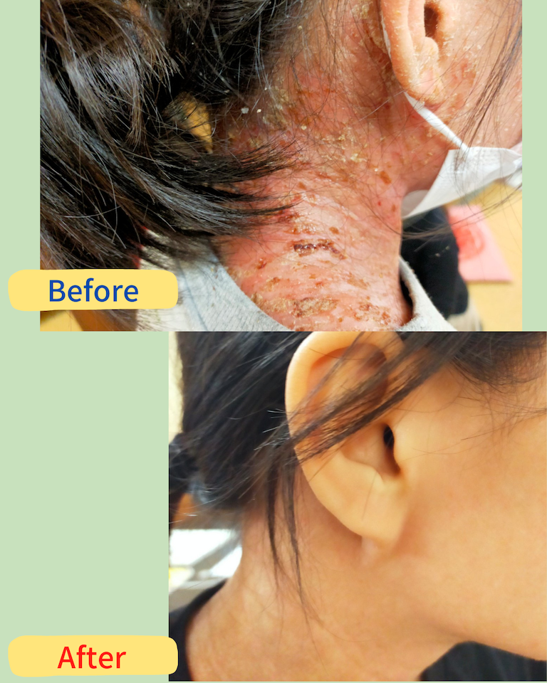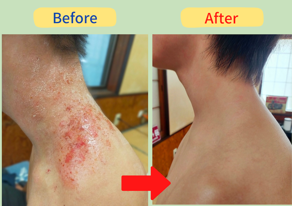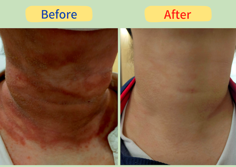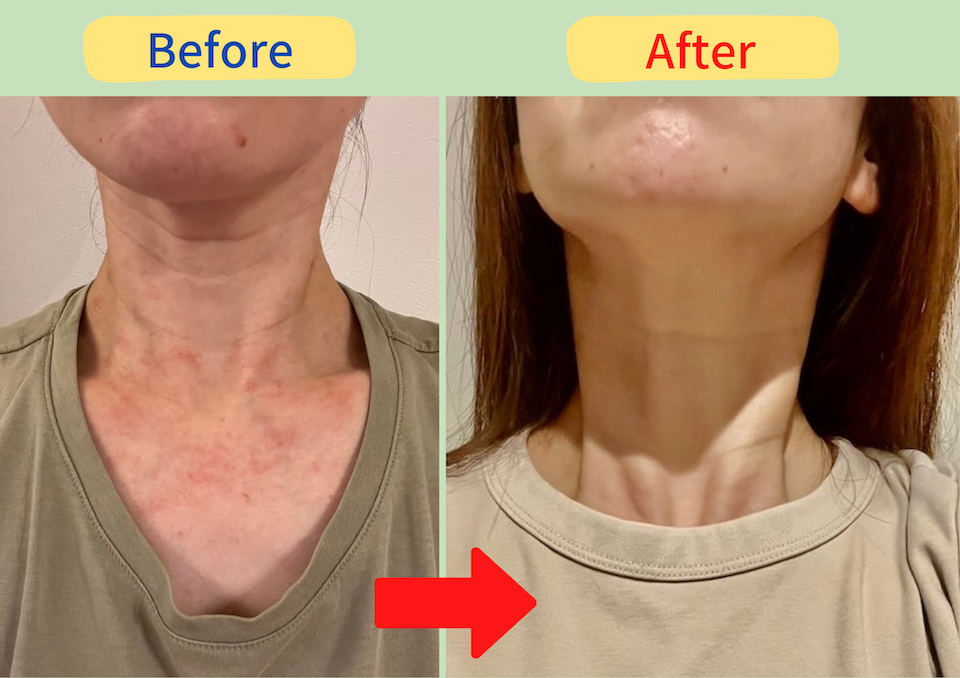 首や腕など、人の目に触れる部分に症状が出ていて、とても辛い毎日を過ごしていました。ですが、約4ヶ月通ううちに首の症状がなくなり、好きな洋服を着て人前に出られることが本当に嬉しいです。/30歳 Sさん