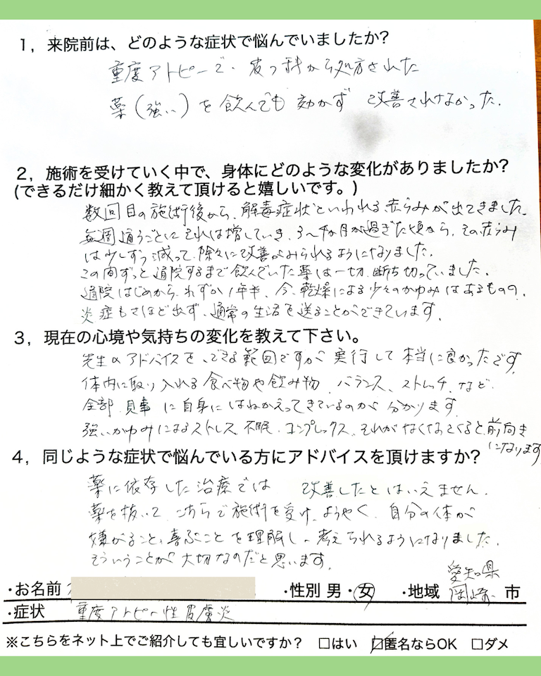 薬に頼らずアトピーを克服した方々の喜びの声をご覧ください