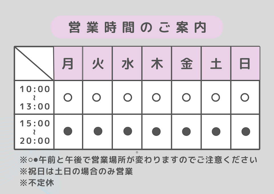 約90〜120分(初回は丁寧にヒアリングを行うため、お時間をいただいております)