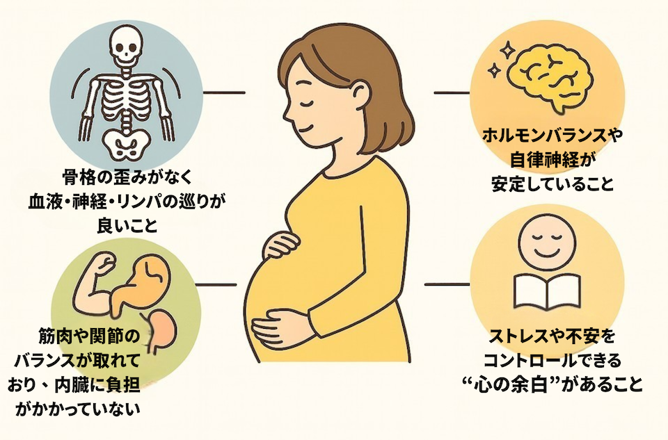 卵子の質や胎盤の状態、ホルモン分泌が安定し、授かる身体へ少しずつ変化していきます。