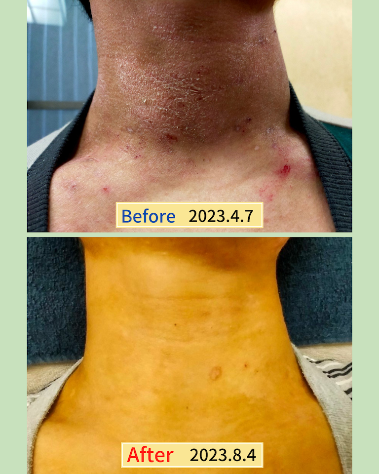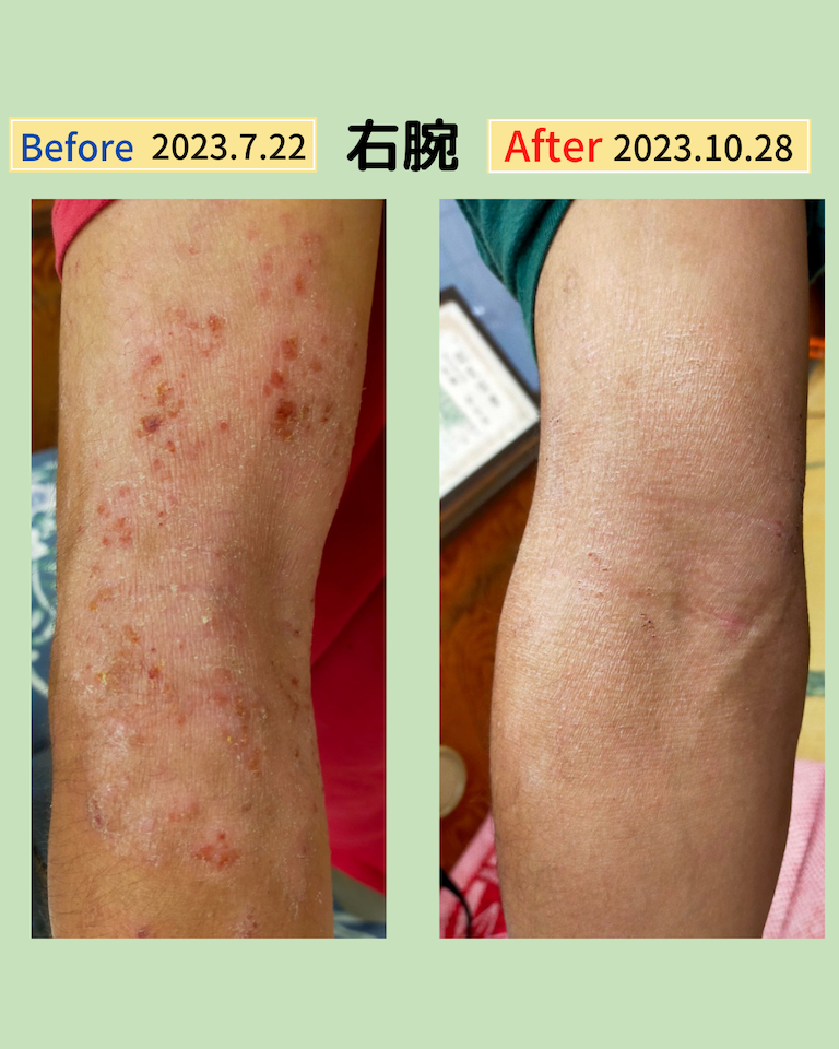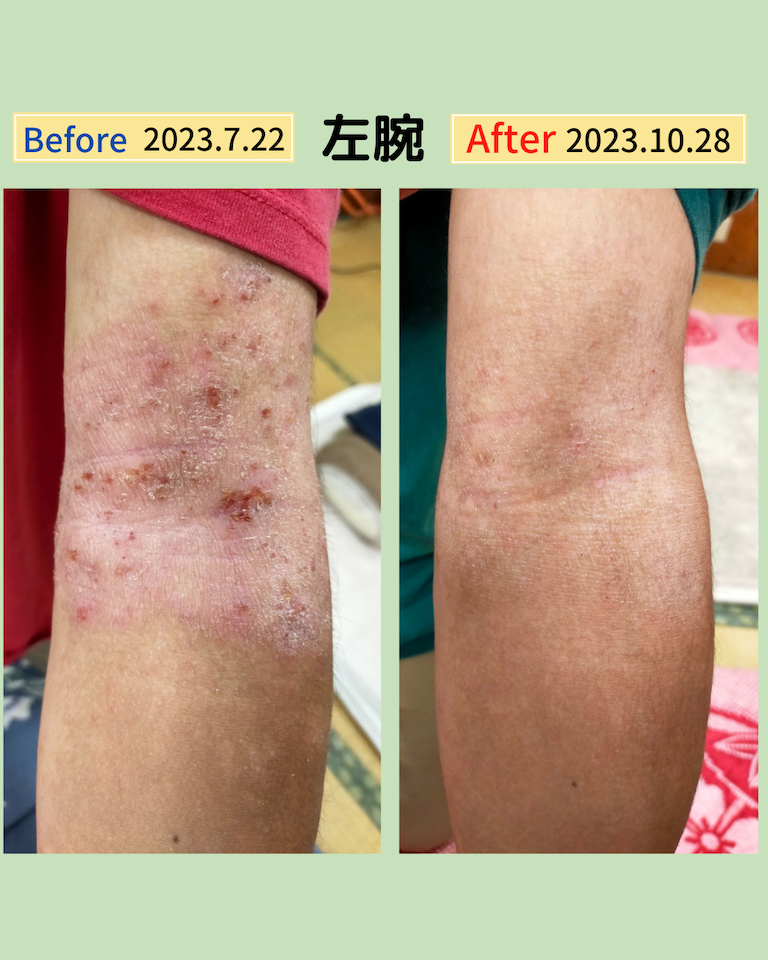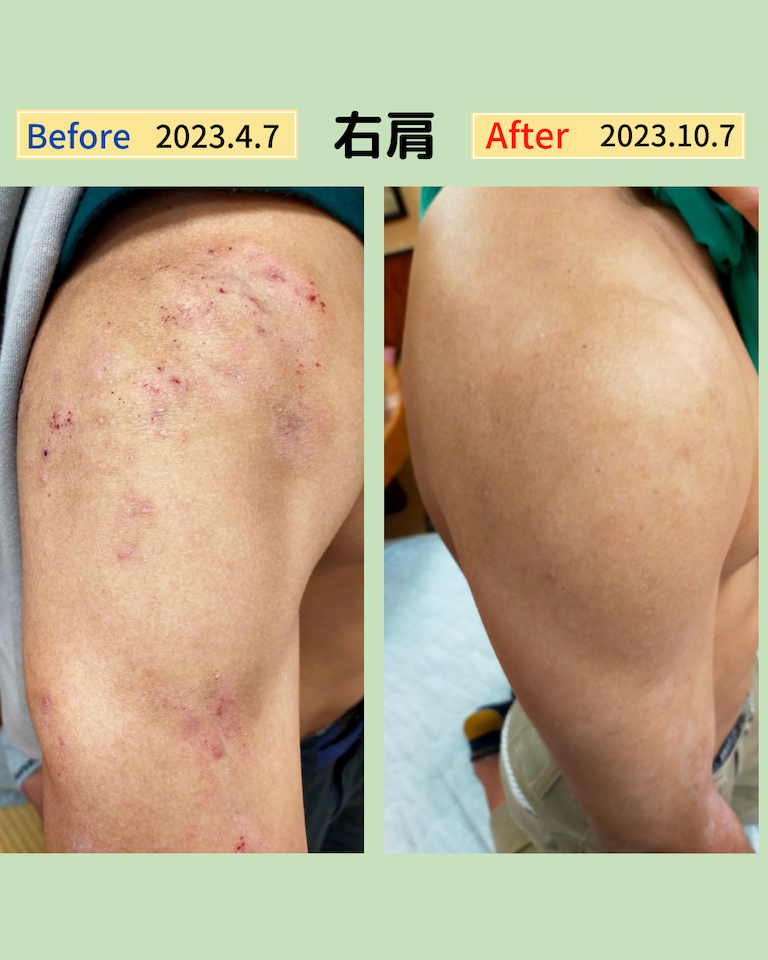 アトピーの症状も、Sさんは汗で反応しやすいタイプなので夏の時期に一度酷くなりましたが、、6ヶ月ほどで上半身の炎症が治まり、かゆみがほとんど気にならなくなりました。