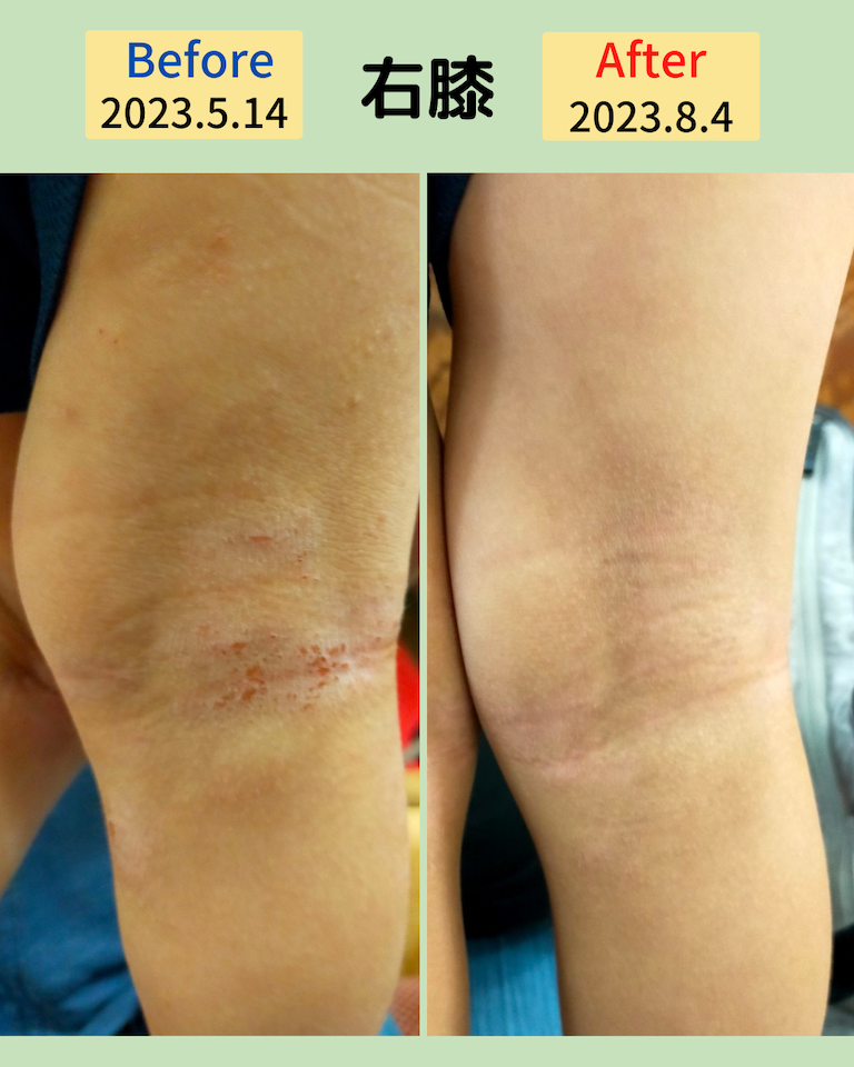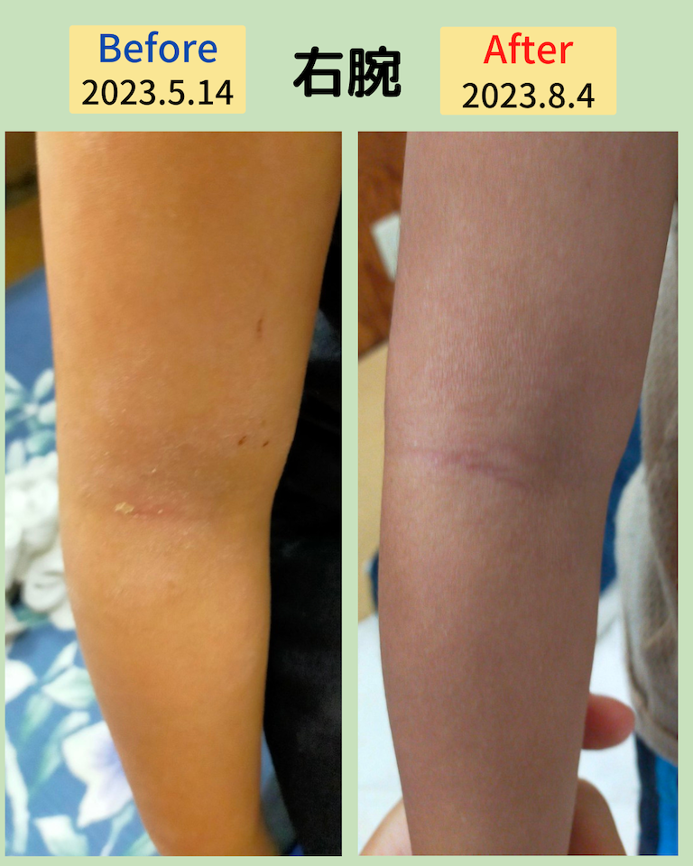 6回の施術と、お母さんが毎日10分続けたマッサージによって、炎症が落ち着き、かゆみも徐々に減ってきました。