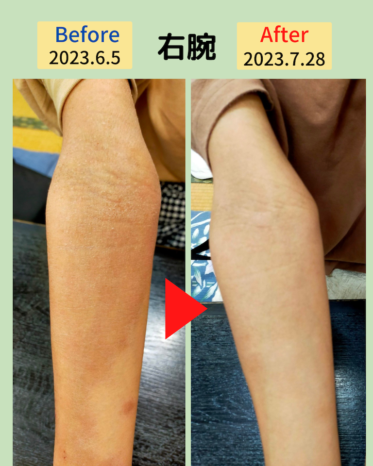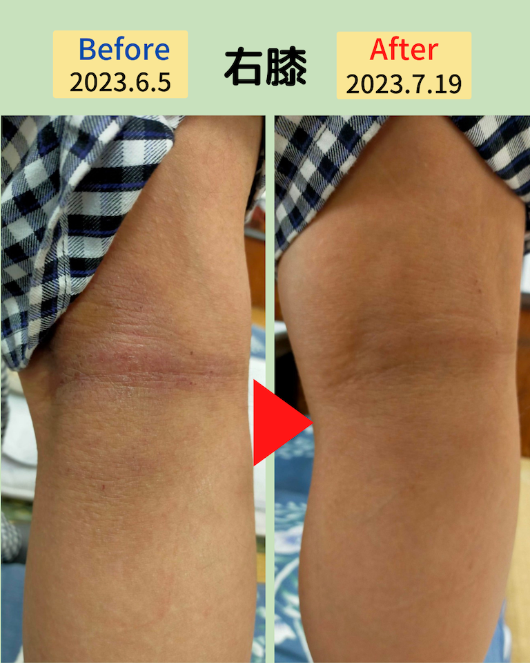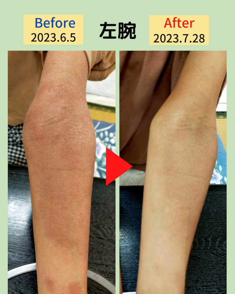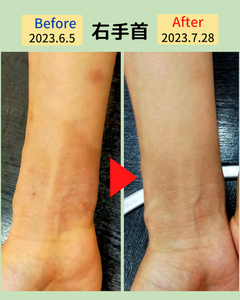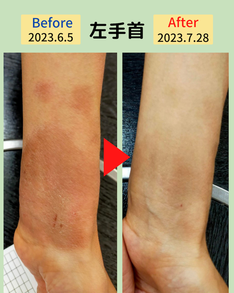 施術後、背骨の歪みもスムーズに整い、その結果、1回目の施術後から赤みが引いてきたとのことでした。