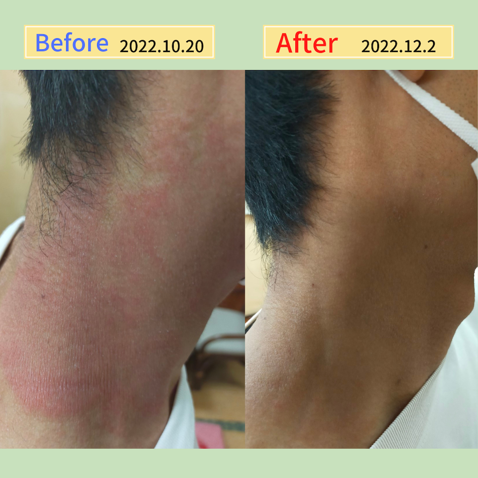 Iさんは、首まわりと目の周辺に強いアトピーの発疹が出ており、特に症状がひどいときには痒みで夜も眠れない日々を過ごしていました。