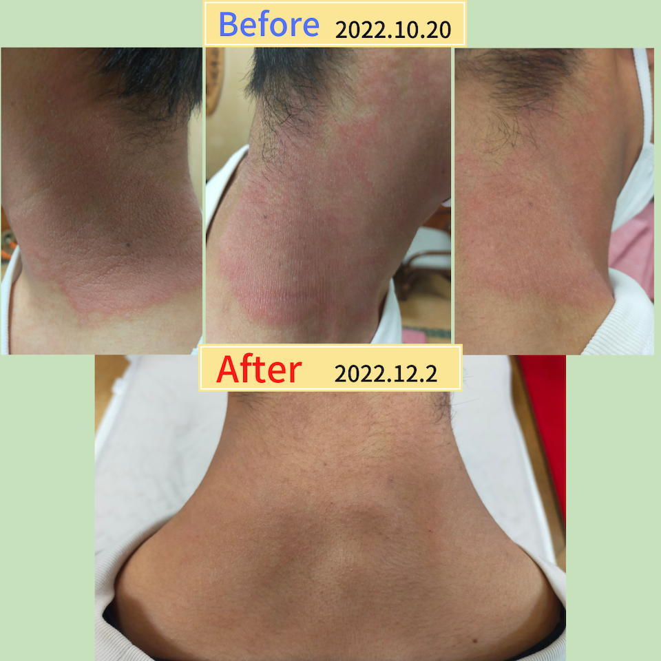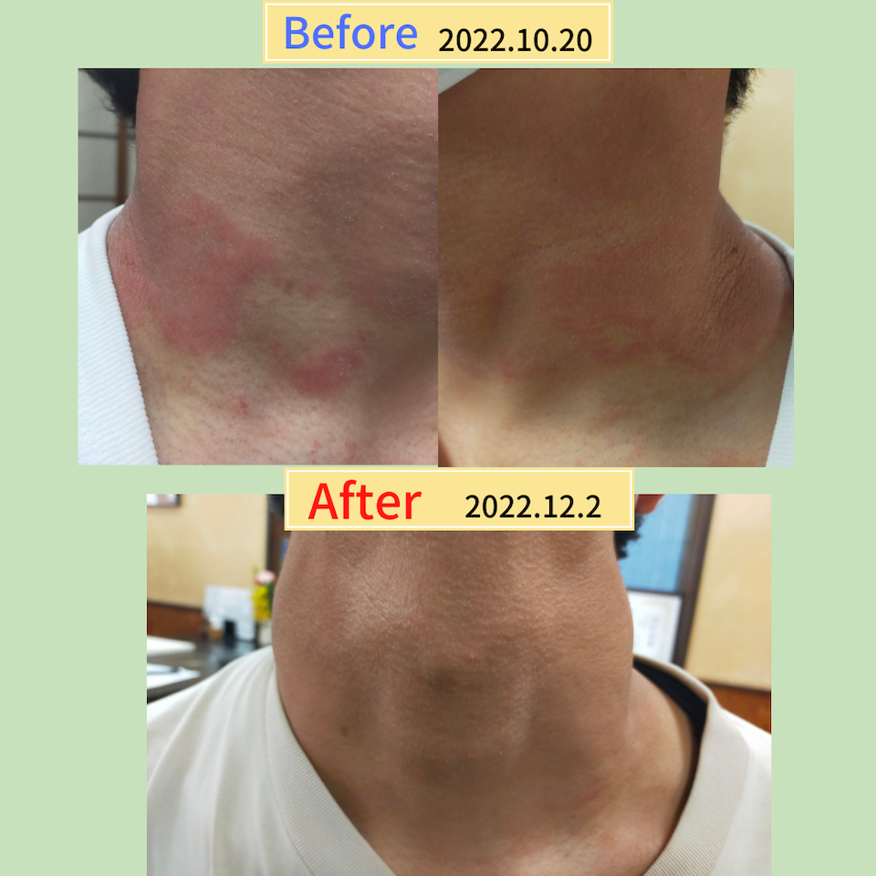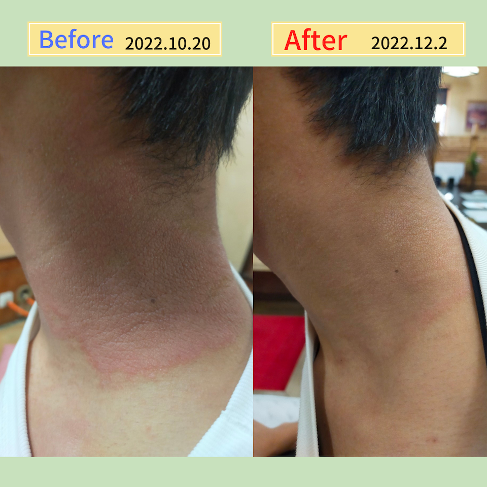 施術の効果の現れ方には個人差がありますが、Iさんの場合は施術開始からわずか1週間ほどで変化が現れ、右首の肌が日に日にすべすべになっていきました。